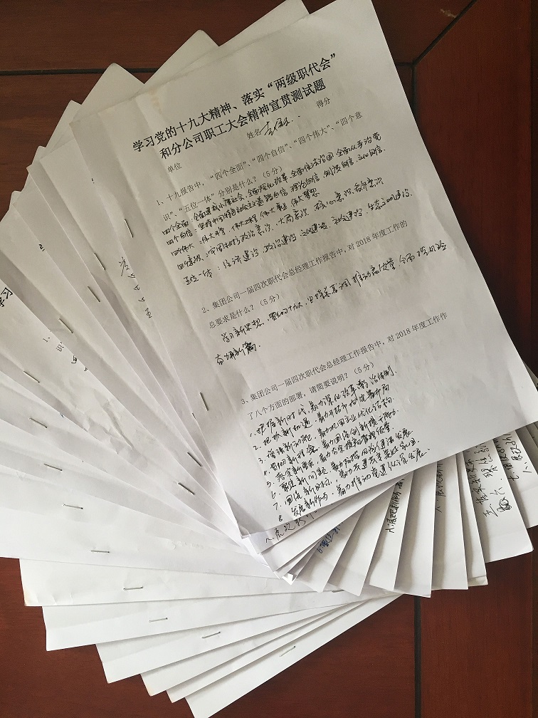 會上,還對參加學(xué)習的同志進行了隨堂考試。