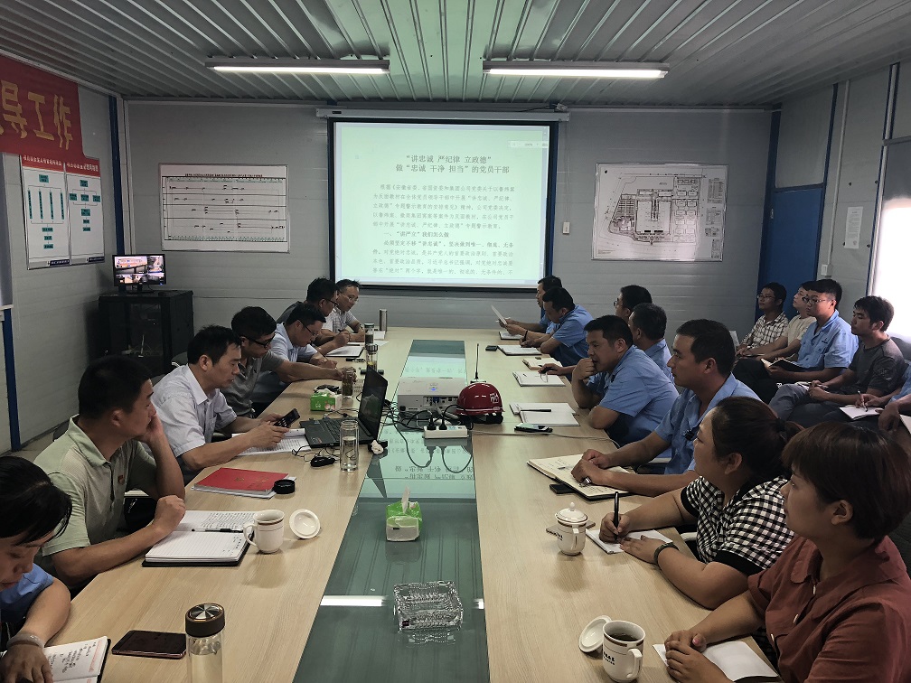 7月31日下午,公司黨委委員、副總經(jīng)理劉安俊,黨委委員、紀(jì)委書(shū)記、工會(huì)主席李寬旭赴安徽中煙蚌埠卷煙廠項(xiàng)目部開(kāi)展題為:“‘講忠誠(chéng)、嚴(yán)紀(jì)律、立政德’做‘忠誠(chéng) 干凈 擔(dān)當(dāng)’的黨員干部”的大宣講活動(dòng),分公司領(lǐng)導(dǎo)班子成員、各部門(mén)人員及項(xiàng)目全體員工參加此次活動(dòng)。