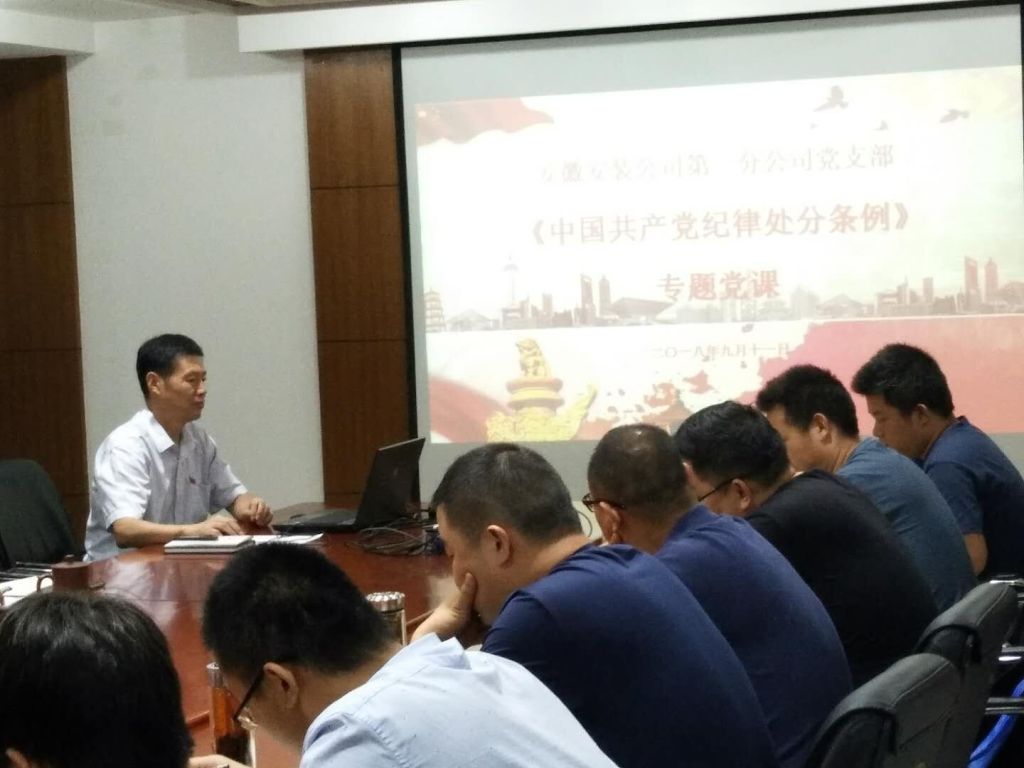 9月11日,第一分公司黨支部開展“黨支部書記上黨課”主題黨日活動(dòng)。分公司黨支部書記胡迎東以新修訂的《中國共產(chǎn)黨紀(jì)律處分條例》為主題,采用PPT的形式為全體黨員、分公司領(lǐng)導(dǎo)班子成員、機(jī)關(guān)部門負(fù)責(zé)人、在肥項(xiàng)目經(jīng)理上了一堂生動(dòng)的黨課。
