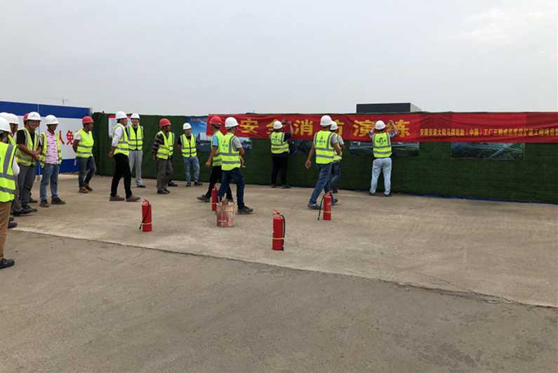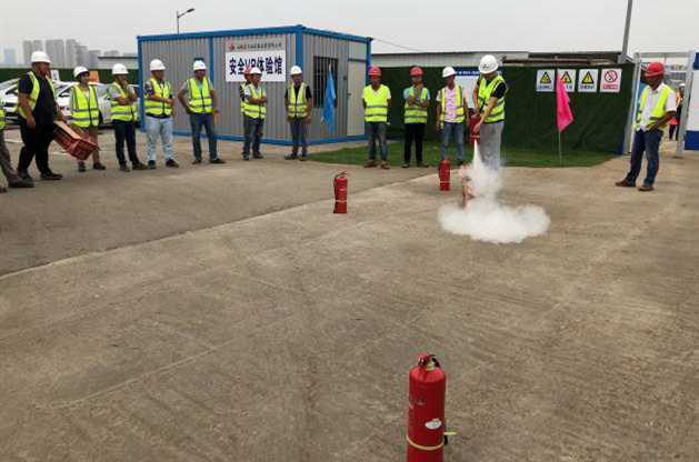 演練正式開始前,項(xiàng)目部全體人員在“安全消防演練”的紅色橫幅上鄭重的簽下了自己的名字。演練按預(yù)定方案進(jìn)行,項(xiàng)目部安全員闡述了本次演練的目的和意義,介紹基礎(chǔ)的火災(zāi)消防知識(shí),點(diǎn)明掌握火災(zāi)逃生的基本方法。項(xiàng)目管理公司安全工程師針對項(xiàng)目部可能存在的火災(zāi)隱患做了重點(diǎn)闡述,并指出項(xiàng)目部可能發(fā)生火災(zāi)的地點(diǎn)主要為生活區(qū),重點(diǎn)強(qiáng)調(diào)各班組長在生活區(qū)要做好宣傳帶頭作用,將火災(zāi)隱患扼殺在萌芽之中。項(xiàng)目技術(shù)負(fù)責(zé)人李冬現(xiàn)場講解并示范了常見的手提式干粉滅火器的使用方法,而后參演人員親自體驗(yàn)了如何正確的使用滅火器。消防演練緊張有序,安全保證工作到位,演練達(dá)到預(yù)期效果。