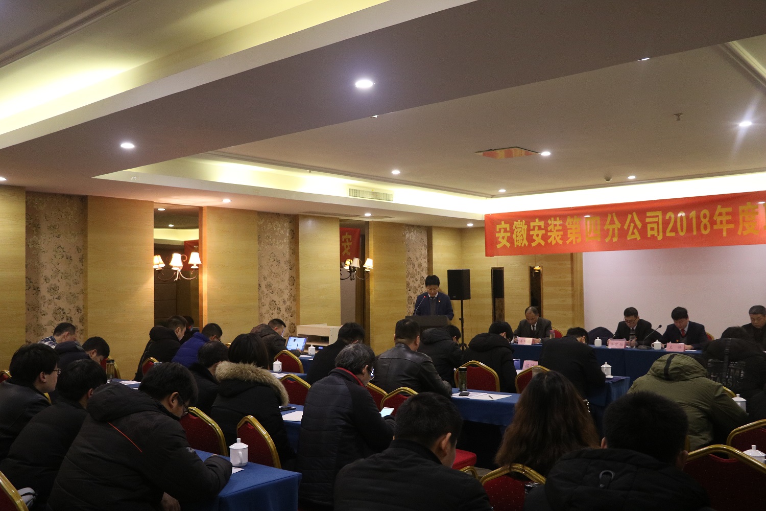2018年1月31日上午,安徽安裝第四分公司在合肥順利召開2018年度職工大會。公司黨委委員、紀委書記、工會主席李寬旭應(yīng)邀出席了大會。