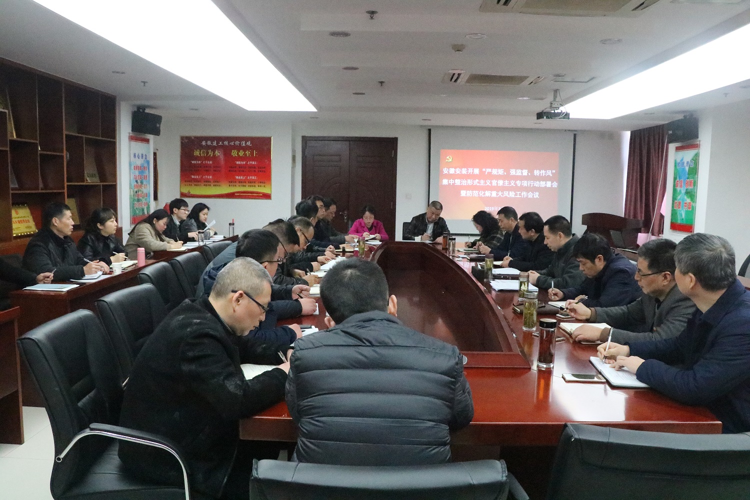 會上,傳達學(xué)習(xí)了集團所屬單位黨委書記抓黨建述職評議會和集中整治形式主義官僚主義專項行動推進會暨防范化解重大風(fēng)險工作會議精神,部署了《安徽安裝公司黨委關(guān)于開展“嚴規(guī)矩、強監(jiān)督、轉(zhuǎn)作風(fēng)”集中整治形式主義官僚主義專項行動實施方案》和《安徽安裝公司黨委關(guān)于堅決打好防范化解重大風(fēng)險攻堅戰(zhàn)的安排意見》,成立了集中整治專項行動領(lǐng)導(dǎo)小組和防范化解重大風(fēng)險工作領(lǐng)導(dǎo)小組。