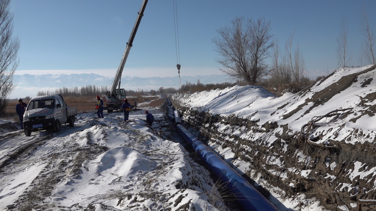 中水回用工程是在野外長距離作業(yè),管道沿途需要穿過高速、省道、鐵路、亞歐光纜及眾多鄉(xiāng)村道路和田間陰溝,施工區(qū)域內(nèi)有農(nóng)田、戈壁、沙漠,沼澤等,自然環(huán)境極其惡劣,施工地質(zhì)極為復(fù)雜。尤其在步入11月,新疆烏蘇市正式進(jìn)入寒冬季節(jié),期間平均氣溫都在零下十度以下,并時(shí)常飛舞著雪花,由于晝夜溫差大,夜間項(xiàng)目上的氣溫更是達(dá)到零下二三十度,這給項(xiàng)目部施工帶來了嚴(yán)重挑戰(zhàn),但項(xiàng)目部員工沒有被惡劣的環(huán)境所嚇倒,他們“逢山開路、遇水搭橋”,努力克服各方面不利因素,合理安排施工進(jìn)度計(jì)劃。全體職工發(fā)揚(yáng)安徽建工人“特別能吃苦,特別能戰(zhàn)斗”的企業(yè)作風(fēng),在公司“大干60天”勞動(dòng)競賽的正向激勵(lì)下,不畏環(huán)境艱苦,抓質(zhì)量,保安全,戰(zhàn)荒漠,斗嚴(yán)寒,每天堅(jiān)持戰(zhàn)斗在生產(chǎn)第一線,哪里有施工,哪里就有管理人員的堅(jiān)定身影。