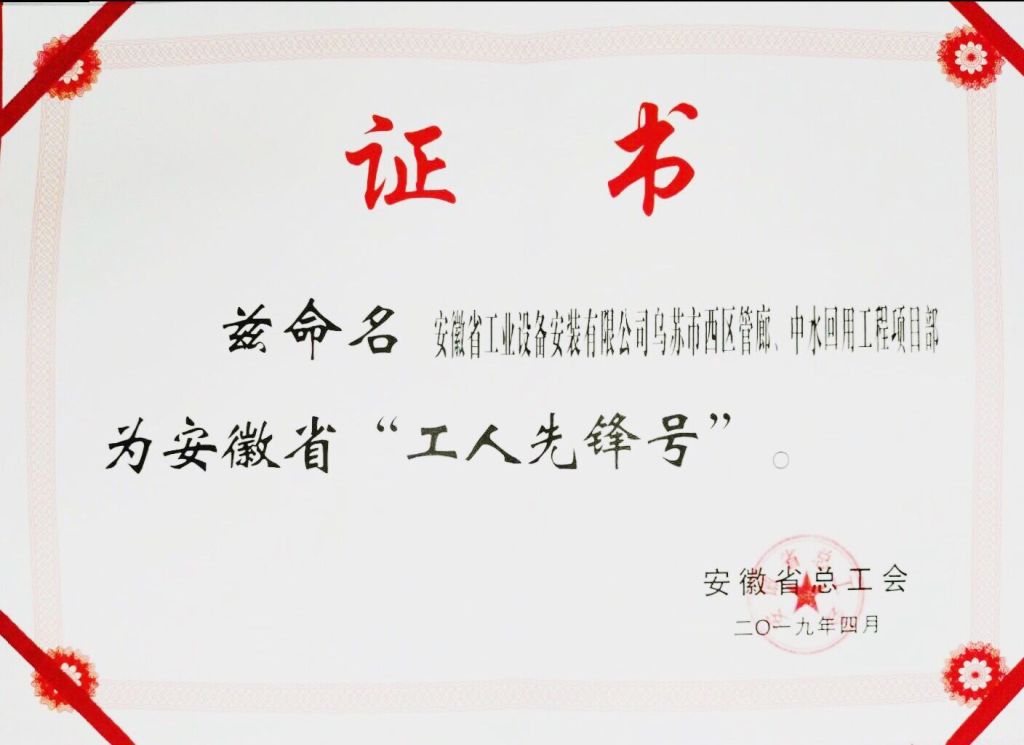勞動(dòng)托起中國夢,奮斗建功新時(shí)代。4月29日上午,“安徽省慶祝‘五一’暨勞動(dòng)和技能競賽先進(jìn)集體先進(jìn)個(gè)人表彰大會(huì)”在安徽大劇院隆重舉行。會(huì)上,安徽安裝公司新疆烏蘇管廊、中水項(xiàng)目部被授予安徽省“工人先鋒號”稱號,這是公司首次獲得該項(xiàng)殊榮。