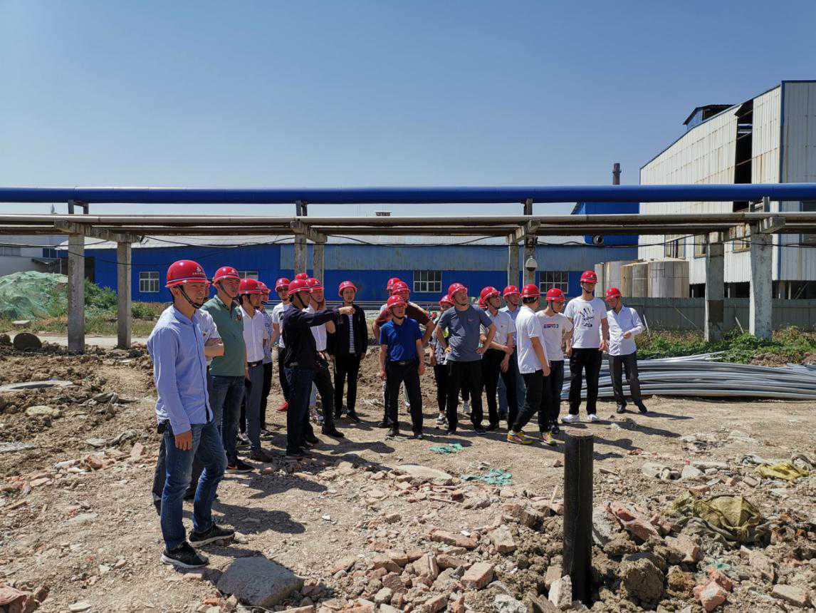 出發(fā)前,合肥分公司經(jīng)理趙永峰作了動(dòng)員強(qiáng)調(diào),他指出,本次觀摩工業(yè)項(xiàng)目是我們學(xué)習(xí)的榜樣,每一位同志都要珍惜這次難得的學(xué)習(xí)機(jī)會(huì),到工地后要實(shí)地細(xì)致觀察,認(rèn)真聽(tīng)取講解,設(shè)身處地思考,力爭(zhēng)取得實(shí)效。上午全體人員到達(dá)宿州中糧項(xiàng)目工地后,受到了蚌埠分公司領(lǐng)導(dǎo)和項(xiàng)目部全體干部員工的熱烈歡迎,分公司經(jīng)理趙銘亮、生產(chǎn)副經(jīng)理張漢軍親自擔(dān)任現(xiàn)場(chǎng)講解。參觀隊(duì)伍在兩位經(jīng)理的帶領(lǐng)下,深入現(xiàn)場(chǎng)分別參觀了乙醇罐體群、發(fā)酵罐體群、以及冷水機(jī)組、工藝管線的安裝現(xiàn)場(chǎng),兩位經(jīng)理結(jié)合現(xiàn)場(chǎng)工程實(shí)體從本項(xiàng)目技術(shù)重難點(diǎn)、施工工藝、安全管理等方面向合肥分公司的同事們進(jìn)行一一的講解。在施工現(xiàn)場(chǎng),大家結(jié)合自身專業(yè)實(shí)際尋找切入點(diǎn)針對(duì)性地進(jìn)行觀摩學(xué)習(xí),唯恐落下一個(gè)可以學(xué)習(xí)的機(jī)會(huì),詳細(xì)記錄現(xiàn)場(chǎng)優(yōu)秀的施工做法,針對(duì)有疑問(wèn)的地方及時(shí)向相應(yīng)專業(yè)技術(shù)負(fù)責(zé)人詢問(wèn)解決辦法。