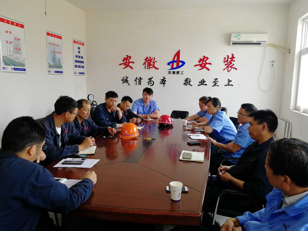 在對施工現(xiàn)場進行全面安全檢查后,隨即在會議室召開會議,項目部全體管理人員及各項目班組負(fù)責(zé)人參加。項目執(zhí)行經(jīng)理張漢軍首先匯報了現(xiàn)場的進度、質(zhì)量等情況。