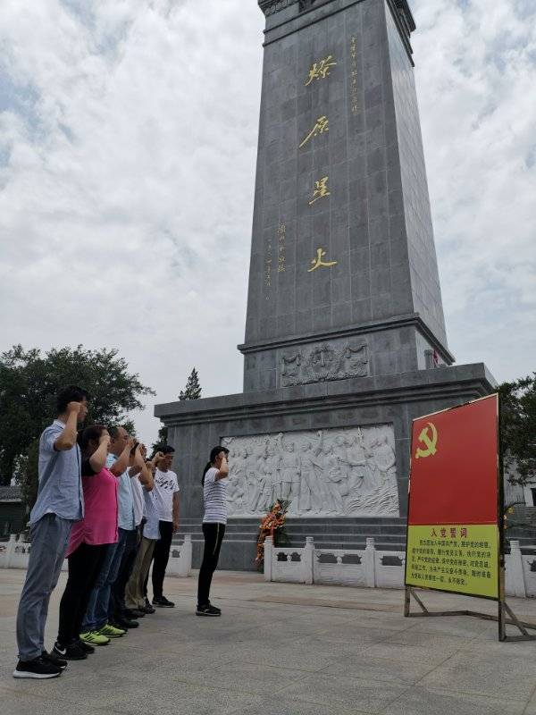 金寨縣位于皖西邊陲、大別山腹地,被譽為“紅軍的搖籃、將軍的故鄉(xiāng)”,是著名的革命老區(qū)。在講解員的帶領(lǐng)下,黨員們參觀了金寨縣革命博物館、金寨縣紅軍紀(jì)念堂、劉鄧大軍千里躍進大別山前方指揮部舊址,瞻仰了洪學(xué)智將軍紀(jì)念碑、紅軍烈士墓園等??粗粋€個紅軍的名字、一件件珍貴的文物、一段段詳盡的史料和一條條悲壯的事跡,大家的思緒仿佛回到了當(dāng)年那段硝煙彌漫的戰(zhàn)爭情景。黨員們憶之所及情之所至,無不為之動容。隨后,在劉伯承元帥親筆題寫的“燎原星火”紀(jì)念塔前,全體黨員面對黨旗,重溫了入黨誓詞。