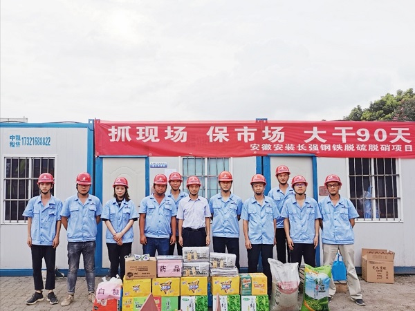 夏日酷暑難耐,高溫導(dǎo)致室外施工作業(yè)困難重重,員工身體負(fù)擔(dān)較大,公司工會(huì)準(zhǔn)備了綠豆、白糖、毛巾、十滴水、香皂、飲料等防暑降溫食品、藥品,專程送到長(zhǎng)強(qiáng)鋼鐵項(xiàng)目工地。在施工現(xiàn)場(chǎng)公司領(lǐng)導(dǎo)李寬旭書記親手將一箱箱、一件件物品送到項(xiàng)目班組職工的手中,讓項(xiàng)目所有參戰(zhàn)人員烈日高溫下感受到絲絲清涼。