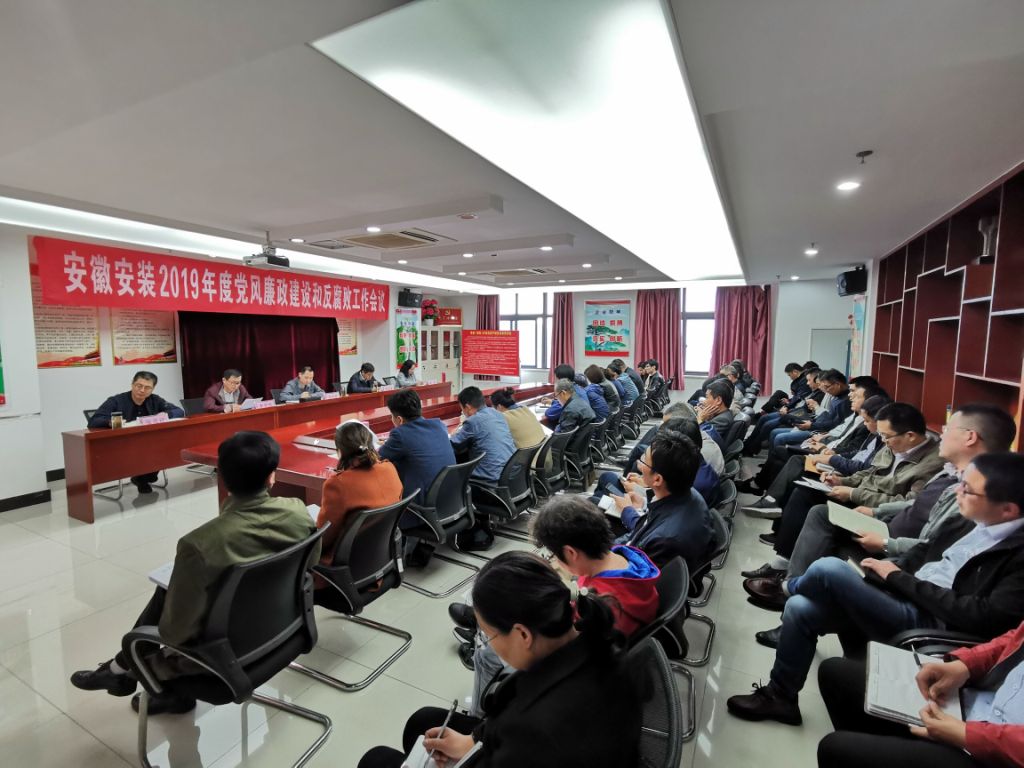 4月29日下午,安徽安裝公司組織召開2019年度黨風廉政建設(shè)和反腐敗工作會議,公司領(lǐng)導班子成員、公司中層管理人員及黨群部門全體人員近60人參加會議。會議由公司紀委書記、工會主席李寬旭主持。