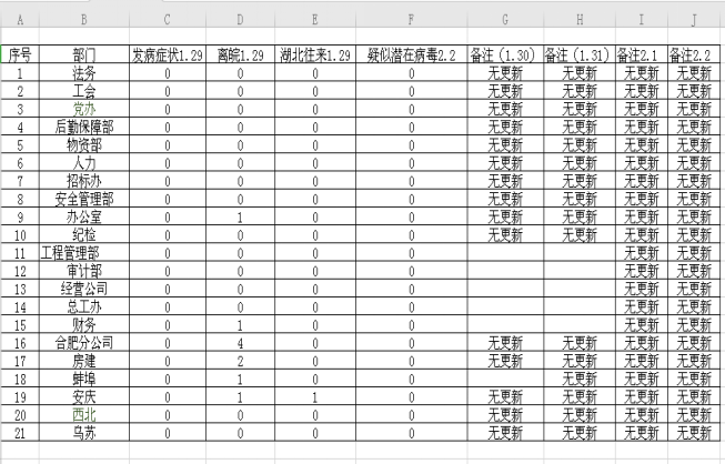 四是日報制度。自1月26日起實行日報制度,各分公司、各部門認真做好登記,確保信息及時準確,形成春節(jié)休假期間上下聯動、聯防聯控的疫情防控工作格局。