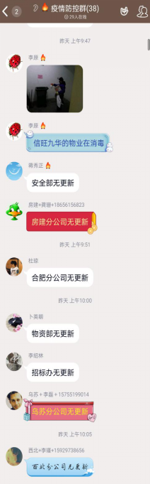 五是防控到位。所屬單位要逐一登記春節(jié)放假期間員工去向情況,及時掌握了解他們的身體健康狀況,做好登記、隔離、情況報告等工作。要求所有員工在釘釘日志專項報告當日去向及身體狀況,時刻密切關注員工的身體健康狀況,防止疫情流入。全力做好防控物資保障,不等不靠,多方籌措、及時采購84消毒液、酒精、口罩、額式溫度計等防護消殺物資,做好個人防護,開展衛(wèi)生全面保潔,消滅衛(wèi)生死角,進行定期消毒。