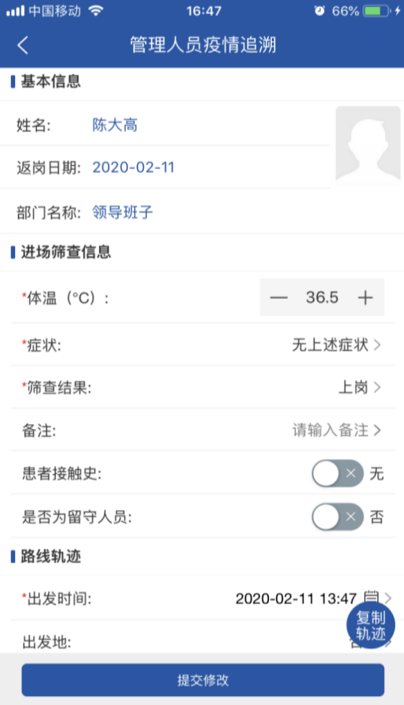 目前,阜陽(yáng)市潁東區(qū)中醫(yī)院建設(shè)ppp項(xiàng)目已有80人登錄“返崗復(fù)工疫情防控系統(tǒng)”APP,借助這款“神器”提升了項(xiàng)目疫情防控工作效能,更有利于項(xiàng)目部做好疫情防控處置工作,并快速做出研判,確保項(xiàng)目復(fù)工復(fù)產(chǎn)安全。