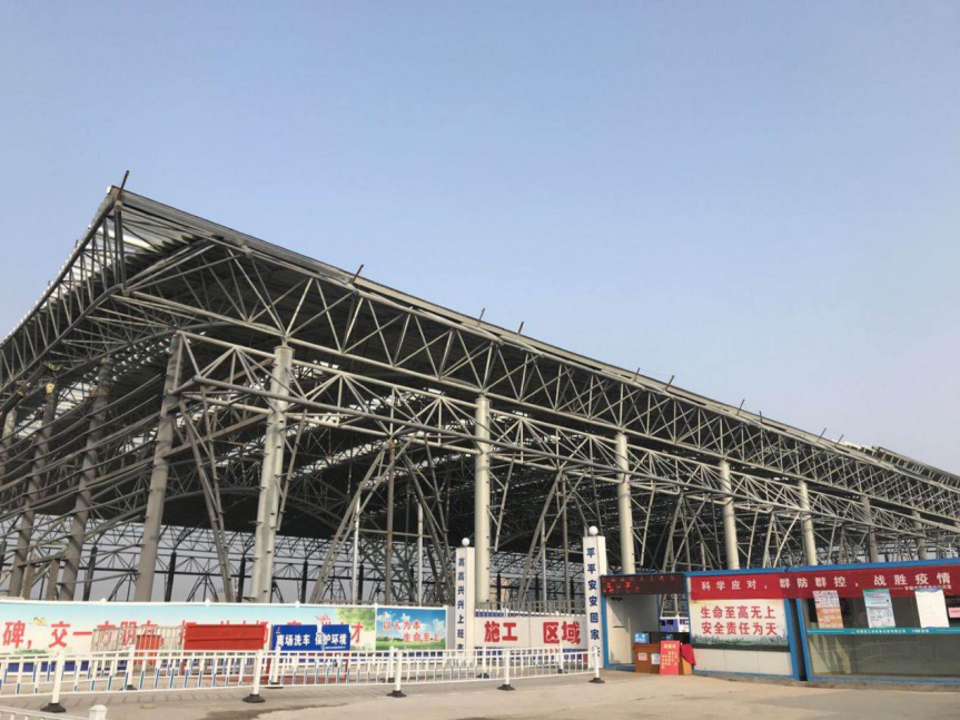 安徽省·水利部淮河水利委員會(huì)水利科學(xué)研究院淮河試驗(yàn)研究中心(水工河工模型試驗(yàn)廳)一期工程,水工河工模型試驗(yàn)廳主要進(jìn)行各種水流模型試驗(yàn),通過(guò)整體水工模型試驗(yàn),率定泄洪閘、排沙孔泄流能力、描述進(jìn)出口水流流態(tài),對(duì)護(hù)岸范圍提出合理的防護(hù)方式,優(yōu)化泄洪消能建筑物布置和體型等發(fā)揮巨大作用。項(xiàng)目主要施工內(nèi)容為新建水工河工模型試驗(yàn)一廳鋼結(jié)構(gòu)及附屬土建工程,建筑面積約20000㎡,基礎(chǔ)形式為長(zhǎng)螺旋鉆孔灌注樁,結(jié)構(gòu)形式為排架柱(圓鋼管)+三肢管桁架結(jié)構(gòu),頂部成弧形空間結(jié)構(gòu)形式,桁架跨度約100m,跨中為四聯(lián)拱(三角桁架),安裝高度最高24m,鋼材用量1800多噸,為目前安徽省建設(shè)第二大跨度的鋼結(jié)構(gòu)工程。目前,該項(xiàng)目整體鋼結(jié)構(gòu)建設(shè)已基本完成,主要施工內(nèi)容是水電安裝、裝飾、幕墻各個(gè)分項(xiàng)建設(shè)。