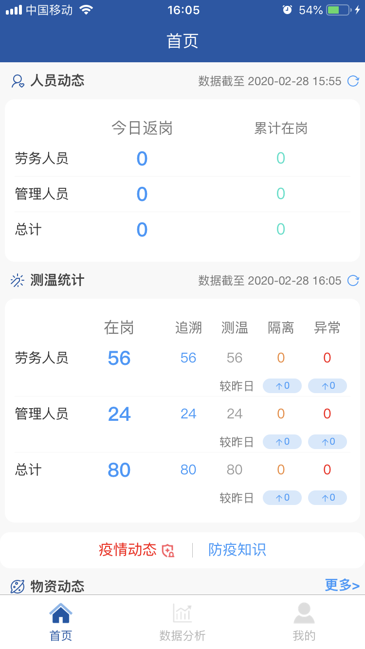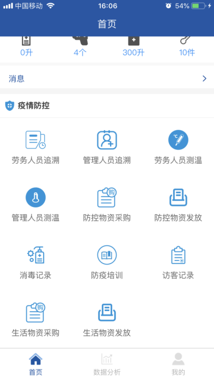 項(xiàng)目全面推行“返崗復(fù)工疫情防控系統(tǒng)”APP。主頁面包括勞務(wù)人員追溯、勞務(wù)人員測(cè)溫、防控物資采購(gòu)、消毒記錄、疫情培訓(xùn)等11個(gè)專題版面,通過這些功能可線上及時(shí)填報(bào)人員返崗日期、體溫、癥狀及是否為留守人員等詳細(xì)信息,還有項(xiàng)目部的疫情物資采購(gòu)情況、環(huán)境衛(wèi)生的消殺情況等相關(guān)信息,使上線人員時(shí)時(shí)了解疫情防控動(dòng)態(tài),充分借助信息技術(shù)手段,全力打贏疫情防控“戰(zhàn)役”。 借助這一平臺(tái)確保項(xiàng)目部實(shí)時(shí)、準(zhǔn)確、有效地掌握現(xiàn)場(chǎng)人員的健康情況,助力疫情防控工作。