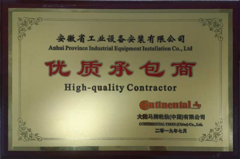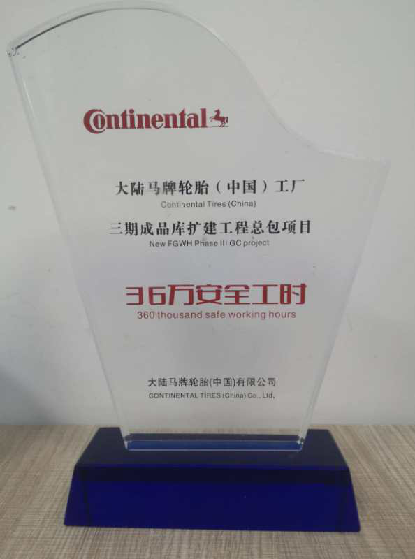 近日,大陸馬牌輪胎(中國)有限公司授予安徽安裝公司“優(yōu)質承包商”獎牌和“36萬安全工時”獎杯。