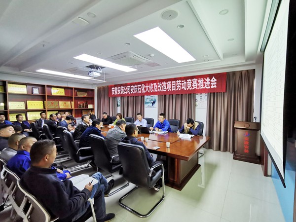 11月2日上午,安徽安裝公司召開(kāi)了安慶石化大修及改造項(xiàng)目勞動(dòng)競(jìng)賽推進(jìn)會(huì),安慶分公司領(lǐng)導(dǎo)班子、各項(xiàng)目經(jīng)理、項(xiàng)目管理人員以及施工班組負(fù)責(zé)人共四十余人參會(huì)。