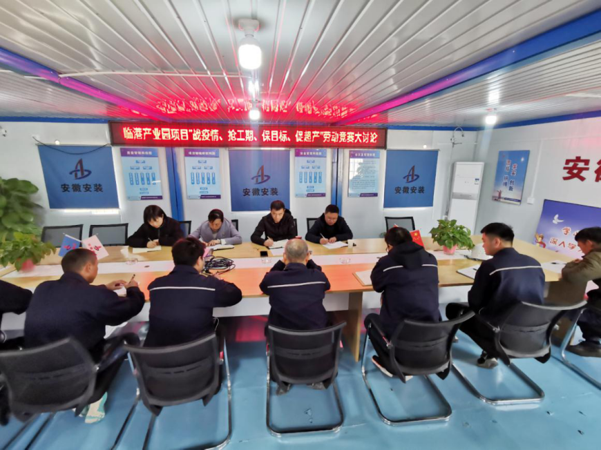 為認(rèn)真貫徹集團(tuán)公司“戰(zhàn)疫情、搶工期、保目標(biāo)、促超產(chǎn)”勞動競賽活動精神,11月19日下午,安徽安裝公司圍繞“不能按時交工為恥辱”的履約意識,在臨港項(xiàng)目部會議室組織開展“戰(zhàn)疫情、搶工期、保目標(biāo)、促超產(chǎn)”主題大討論活動。公司紀(jì)委書記、工會主席李寬旭,公司相關(guān)部門負(fù)責(zé)人,蚌埠分公司領(lǐng)導(dǎo)班子成員,項(xiàng)目管理人員等共計20余人參加會議,會議由李寬旭主持。