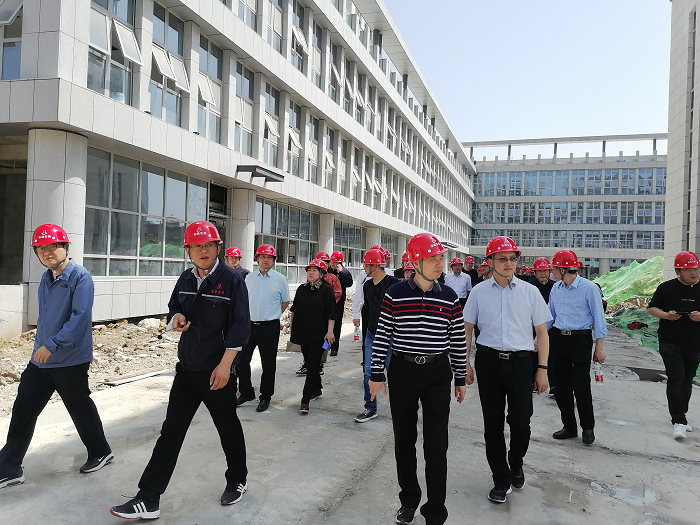 與會(huì)人員首先現(xiàn)場(chǎng)觀摩了阜陽市潁東中醫(yī)院項(xiàng)目,在項(xiàng)目經(jīng)理徐明東的講解和帶領(lǐng)下,大家邊走邊看邊交流,詳細(xì)了解了項(xiàng)目實(shí)施情況、施工的重難點(diǎn)、進(jìn)度管控措施。