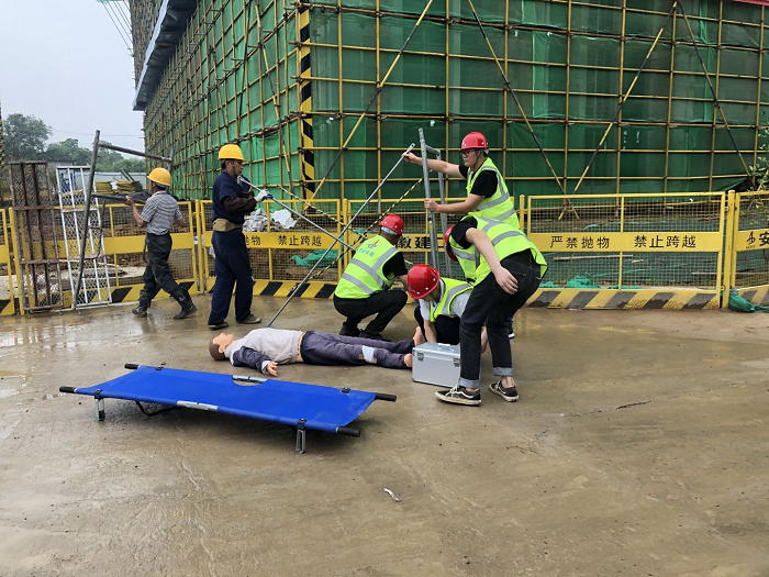 此次演練內(nèi)容為在活動腳手架拆除的過程中,作業(yè)人員突然發(fā)生高處墜落事故。演練過程模擬了事故發(fā)生、信息上報、現(xiàn)場處置、現(xiàn)場救治、心肺復(fù)蘇、應(yīng)急狀態(tài)解除、善后處置等環(huán)節(jié)。本次演練指導(dǎo)思想明確,組織工作嚴(yán)密,準(zhǔn)備工作充分,事故處理井然有序,演練圓滿完成。