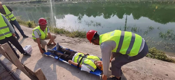 固鎮(zhèn)三八河景觀工程項(xiàng)目部根據(jù)本項(xiàng)目臨近水邊的作業(yè)特點(diǎn)開展了防溺水應(yīng)急救援演練,模擬現(xiàn)場(chǎng)人員發(fā)生溺水,項(xiàng)目部立即組織人力搶救上岸。立即清除口、鼻中的污泥、雜草,保持呼吸道通暢。并進(jìn)行胸外按壓及人工呼吸,120救護(hù)車及時(shí)到場(chǎng)后送往醫(yī)院搶救,通過防溺水演練增強(qiáng)了項(xiàng)目部全體員工遇到緊急情況時(shí)的應(yīng)變能力和實(shí)際操作救援處置能力。