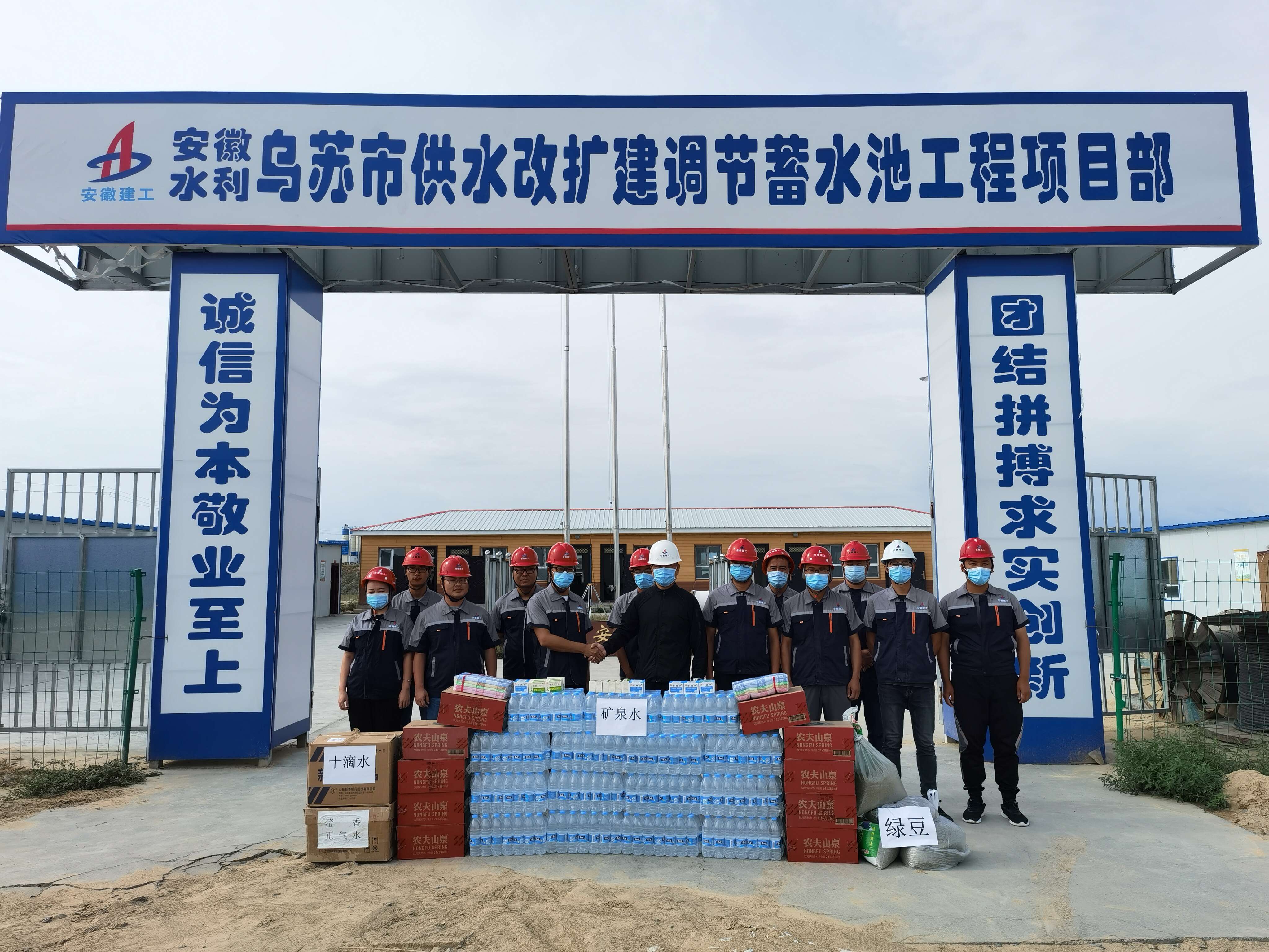 2021年7月14日上午,公司副總經理王軍赴烏蘇市供水改擴建調節(jié)蓄水池項目“送清涼”,將礦泉水、綠豆、冰糖、藿香正氣水、十滴水、毛巾、香皂等防暑降溫物品送到一線員工手中。