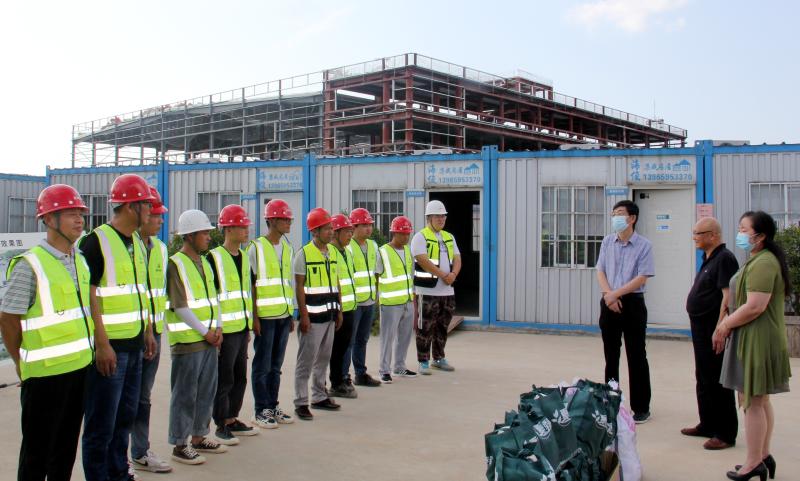 楊金城指出,蚌埠市總工會此次“送清涼”活動,既是關(guān)心一線生產(chǎn)工人、為職工服務(wù)的重點工作,也是“學(xué)黨史、辦實事”的一項具體措施,安徽安裝公司在臨港智能制造產(chǎn)業(yè)園項目施工中顧全大局,擔(dān)當(dāng)作為,不僅鍛造了一支高素質(zhì)的施工隊伍,更為蚌埠市經(jīng)濟發(fā)展做出了較大貢獻,希望項目部全體職工繼續(xù)發(fā)揚吃苦耐勞精神,做好疫情防控,將防暑降溫、安全生產(chǎn)等各項舉措落實到位,為職工提供一個舒適安全的工作環(huán)境。