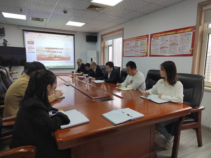 3月18日上午,陜西分公司組織召開(kāi)2022年度職工大會(huì),分公司領(lǐng)導(dǎo)班子成員、機(jī)關(guān)全體人員共同參會(huì),會(huì)議由分公司黨支部書(shū)記江輝主持。