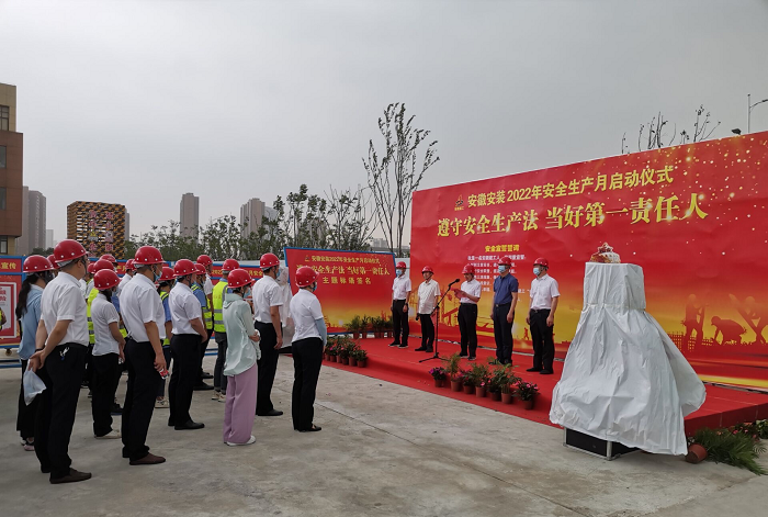在全國第21個“安全生產(chǎn)月”活動到來之際,5月30日上午,安徽安裝公司2022年“安全生產(chǎn)月”啟動儀式在年配套1000萬臺新能源汽車及年產(chǎn)2億臺制冷空調(diào)壓縮機關(guān)鍵性能件制造基地項目舉行。公司黨委書記、董事長胡六中,紀(jì)委書記、工會主席李楊,副總經(jīng)理趙伯平,總工程師吳繼成及機關(guān)各部門、各分公司代表參加了本次活動。