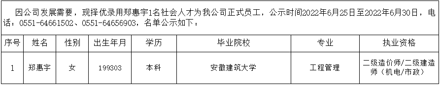 2022年擬錄用社會(huì)人才公示