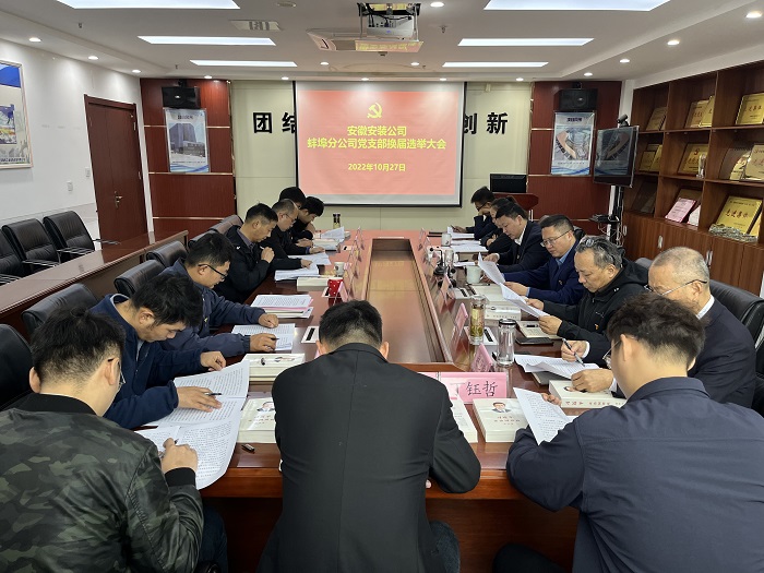 10月27日上午,蚌埠分公司黨支部召開換屆選舉大會,全體黨員參會,會議由黨支部書記王偉主持。