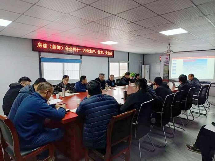 11月23日下午,房建(裝飾)分公司在阜南縣城南污水處理廠改擴建及配套管網(wǎng)工程(廠區(qū)工程)項目召開11月份生產(chǎn)、經(jīng)營、安全暨成本分析會。公司黨委委員、副總經(jīng)理趙伯平,總工程師吳繼成,公司相關(guān)部門負責人及分公司領(lǐng)導(dǎo)班子成員、各項目主要負責人等參加會議。