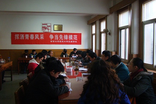 最后,戴書記聯系實際,就公司年輕大學生隊伍如何快速發(fā)展和發(fā)揮先鋒模范作用提出三點意見:一是年輕同志要著重從學習提高,實踐磨煉,作風養(yǎng)成三個方面把握自身成長規(guī)律,不斷提升自己。二是結合科學發(fā)展觀,堅持以人為本,尤其是對有沖勁、有干勁的在職大學生多關懷,積極構筑公司“人本管理”模式,把建設一支高素質人才隊伍、黨員隊伍貫穿創(chuàng)先爭優(yōu)活動的始終。三是對在職大學生如何健康成長、快樂成才提出殷切希望:一要保持積極的心態(tài),要善于穩(wěn)定情緒,合理的進行自我減壓,主動與人有效溝通;二要保持務實的工作作風,踏實努力,加強執(zhí)行力的鍛煉;三要保持良好的形象,由內而外的提升自己的素養(yǎng)。在新的一年里,希望大學生黨員在各自的崗位上率先垂范,彰顯風采,把“揮灑青春風采,爭當先鋒模范”精神延伸到項目文化、企業(yè)文化和機關效能建設中去,為公司三個文明建設的進一步加強和未來三年大發(fā)展夯實思想、隊伍、管理基礎,為公司的“十二五”發(fā)展貢獻力量。