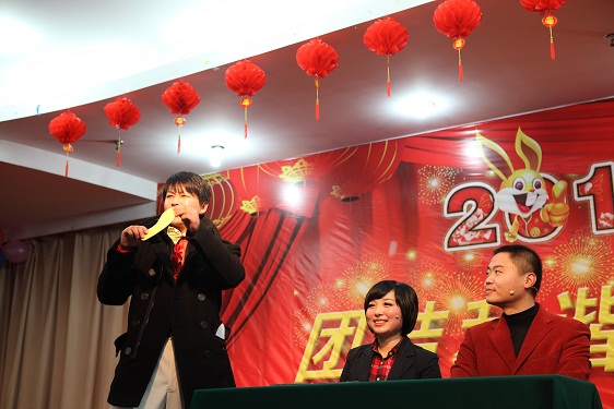 伴隨著優(yōu)美的旋律,聯(lián)歡會在民族器樂合奏《喜洋洋》中正式拉開序幕,輕快的音符,奏出了我們共同的喜悅;三句半《省安明天更美好》,述說了省安快速發(fā)展的歷程和取得的可喜成績;小品《超幸福鞋墊》,創(chuàng)意新穎,博得了在場觀眾的陣陣掌聲;勁舞《NO.1》,動感十足,展現(xiàn)了省安年輕人的朝氣與活力。公司黨委書記戴樹明更是興致高昂,即興演唱了一首《有一個美麗的傳說》,鏗鏘有力的歌聲,將整臺晚會推向了高潮。