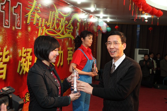 公司總經(jīng)理王軍邦代表公司黨政領(lǐng)導班子致新春賀詞,感謝一年來上級領(lǐng)導的大力支持和關(guān)懷,感謝全體員工的辛勤付出和熱愛。他說,過去的2010年里,在集團公司的領(lǐng)導下,公司上下同心協(xié)力,完成產(chǎn)值10.08億元,各方面工作取得了優(yōu)異的成績,生產(chǎn)經(jīng)營快速發(fā)展,管理模式逐步成型,資源整合不斷優(yōu)化,文化載體日漸豐富,品牌效應(yīng)日漸凸顯,凝聚力和執(zhí)行力不斷提高,各項工作穩(wěn)步邁上了新臺階,在行業(yè)內(nèi)得到了充分的肯定,實現(xiàn)了“十一五”的完美收官。在“十二五”開局之年里,我們將緊密依托集團公司領(lǐng)導,以提高經(jīng)濟效益為重心,團結(jié)協(xié)作,迎難而上,銳意進取,共創(chuàng)2011事業(yè)輝煌!