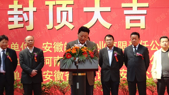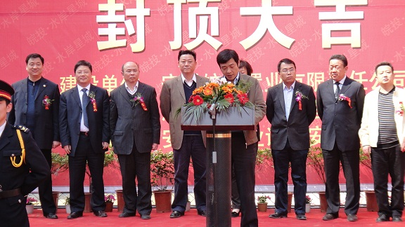 皖投置業(yè)總經(jīng)理耿文女士在慶典上發(fā)表講話,對我公司全體人員的工作給予了充分的肯定,并表示皖投水岸星城一期三標段工程的順利封頂,奠定了皖投置業(yè)與省安裝公司成為長期戰(zhàn)略合作伙伴的基礎(chǔ)。
