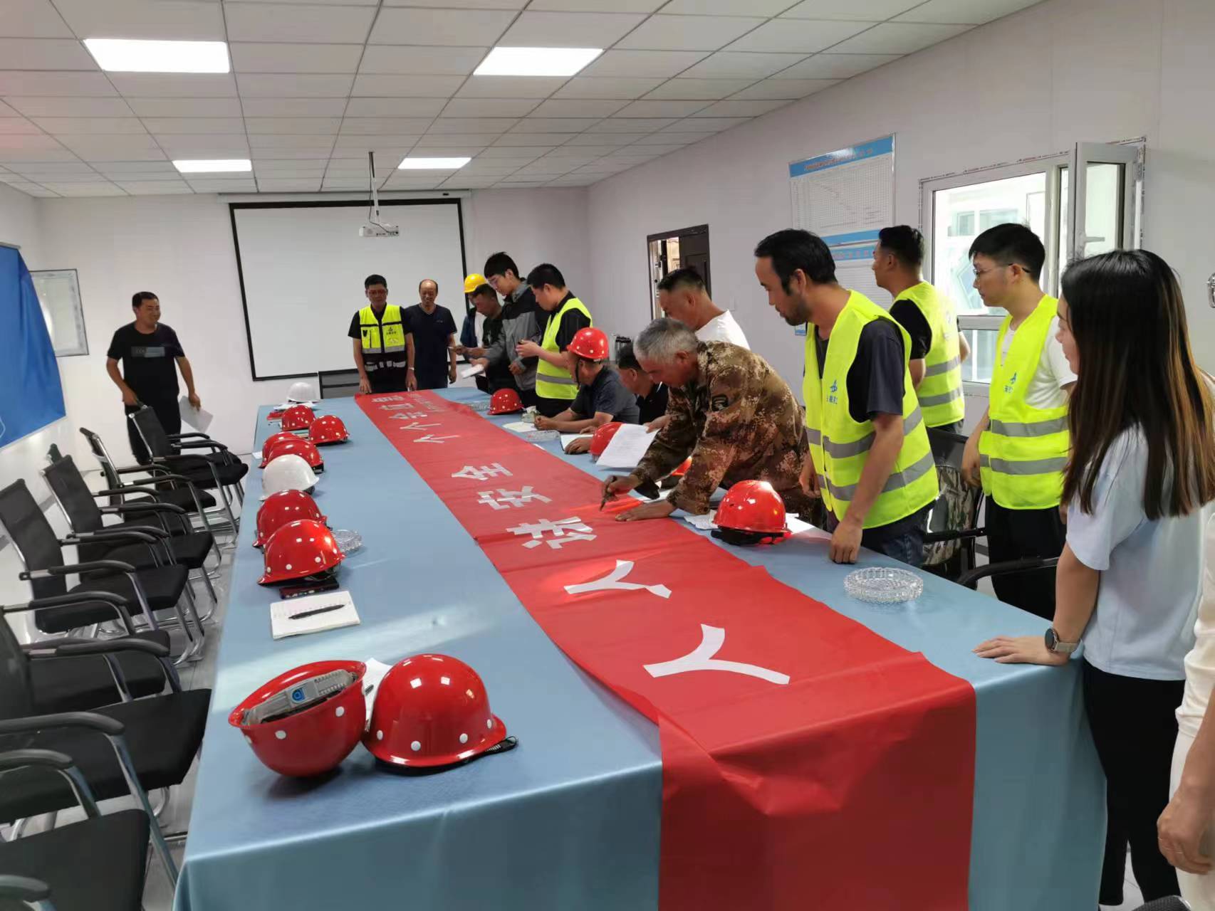 啟動(dòng)儀式上,項(xiàng)目部安全員向大家宣讀此次安全月活動(dòng)的活動(dòng)方案,播放安全教育、警示類視頻,并著重講解施工現(xiàn)場(chǎng)及生活區(qū)一些常見(jiàn)而易忽視的安全隱患及防范措施,提升管理人員在面對(duì)風(fēng)險(xiǎn)時(shí)的安全意識(shí),并指出確保安全是各類生產(chǎn)活動(dòng)的首要任務(wù),全員要樹立安全第一、生命至上的理念。分公司所屬項(xiàng)目部管理人員要嚴(yán)格落實(shí)安全生產(chǎn)責(zé)任制,樹牢安全紅線意識(shí),通過(guò)宣傳教育、實(shí)戰(zhàn)演練、隱患排查等方式,讓分公司全體員工和所屬項(xiàng)目所有參建人員更積極主動(dòng)參與到各項(xiàng)安全生產(chǎn)活動(dòng)中來(lái),清楚各自在安全體系管理中的責(zé)任及意義,努力營(yíng)造一個(gè)“人人要安全、人人管安全”的良好安全管理氛圍,提升分公司安全管理水平。在儀式的最后,所有人員在安全員的帶領(lǐng)下莊嚴(yán)宣誓,并在印有“人人講安全,個(gè)個(gè)會(huì)應(yīng)急”的橫幅上進(jìn)行安全承諾簽名。