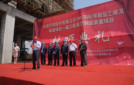 2011年4月28日,安徽省工業(yè)設(shè)備安裝公司滁州分公司承建的安徽華塑項(xiàng)目工程施工現(xiàn)場,到處場洋溢著一片祥和、喜慶的氣氛。上午10:18分,迎來了安徽華塑真空制鹽鹽硝車間土建主體結(jié)構(gòu)封頂儀式。公司總經(jīng)理王軍幫、副總經(jīng)理劉安俊,華塑公司黨委書記黃家發(fā)、 副總經(jīng)理梁東風(fēng),北京中輕國際工程管理有限公司現(xiàn)場總監(jiān)郭均川等領(lǐng)導(dǎo)應(yīng)邀出席了封頂儀式。本工程從開工到土建主體結(jié)構(gòu)封頂,在質(zhì)量、安全、進(jìn)度等方面受到了業(yè)主和監(jiān)理單位的一致好評(píng),并獲得華塑園區(qū)二十多家施工單位綜合評(píng)比第二名得好成績。真空制鹽主體結(jié)構(gòu)施工進(jìn)度上創(chuàng)造了全國最短時(shí)間,為公司在今后進(jìn)一步占領(lǐng)鹽化工程市場打下了堅(jiān)實(shí)的基礎(chǔ)。