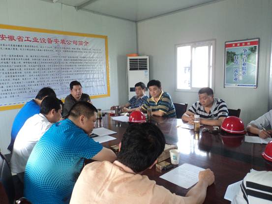 項目部土建、安裝負(fù)責(zé)人對現(xiàn)階段的工程進(jìn)展、質(zhì)量、安全情況進(jìn)行了匯報,滁州分公司副經(jīng)理、該項目總負(fù)責(zé)李多德對資金回收及下一步安裝工作做了具體匯報。