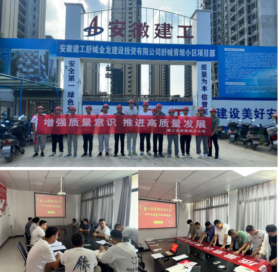 為落實(shí)好2023年全國(guó)“質(zhì)量月”活動(dòng)要求,近日,建工安裝滁州分公司分別在舒城片區(qū)項(xiàng)目、光明徐小牧場(chǎng)、阜南污水處理廠等項(xiàng)目陸續(xù)舉辦了2023年“質(zhì)量月”活動(dòng)啟動(dòng)儀式。分公司領(lǐng)導(dǎo)班子成員、分公司相關(guān)部門負(fù)責(zé)人、項(xiàng)目部全體人員參加了啟動(dòng)儀式。