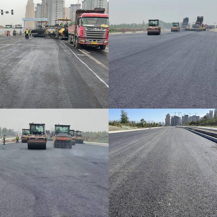 為了確保第一層瀝青安全高效攤鋪,項目部超前謀劃、科學(xué)組織、精心安排,圍繞瀝青攤鋪施工工藝、質(zhì)量控制要點、機械設(shè)備安全操作規(guī)程及現(xiàn)場施工注意事項等方面進(jìn)行詳細(xì)的安全技術(shù)交底。攤鋪過程中,項目部嚴(yán)格控制瀝青混合料運輸、瀝青料攤鋪溫度、松鋪系數(shù)和碾壓工藝等工序,只見現(xiàn)場機械隆隆作響,讓這條1.25公里的筆直“巨龍”漸漸穿上黑色“鱗甲”;經(jīng)過近15個小時奮戰(zhàn),順利完成瀝青第一層瀝青攤鋪任務(wù)。