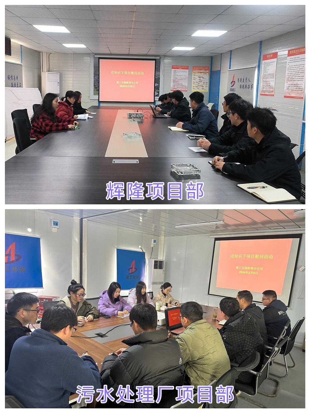 又是一年春暖花開時,迎來了第114個三八國際婦女節(jié),為慶祝節(jié)日,更好地展現(xiàn)安裝女職工的巾幗風(fēng)貌,3月8日,蚌埠分公司女職工分別赴輝隆項(xiàng)目部、污水處理廠項(xiàng)目部開展“送知識下項(xiàng)目”活動。