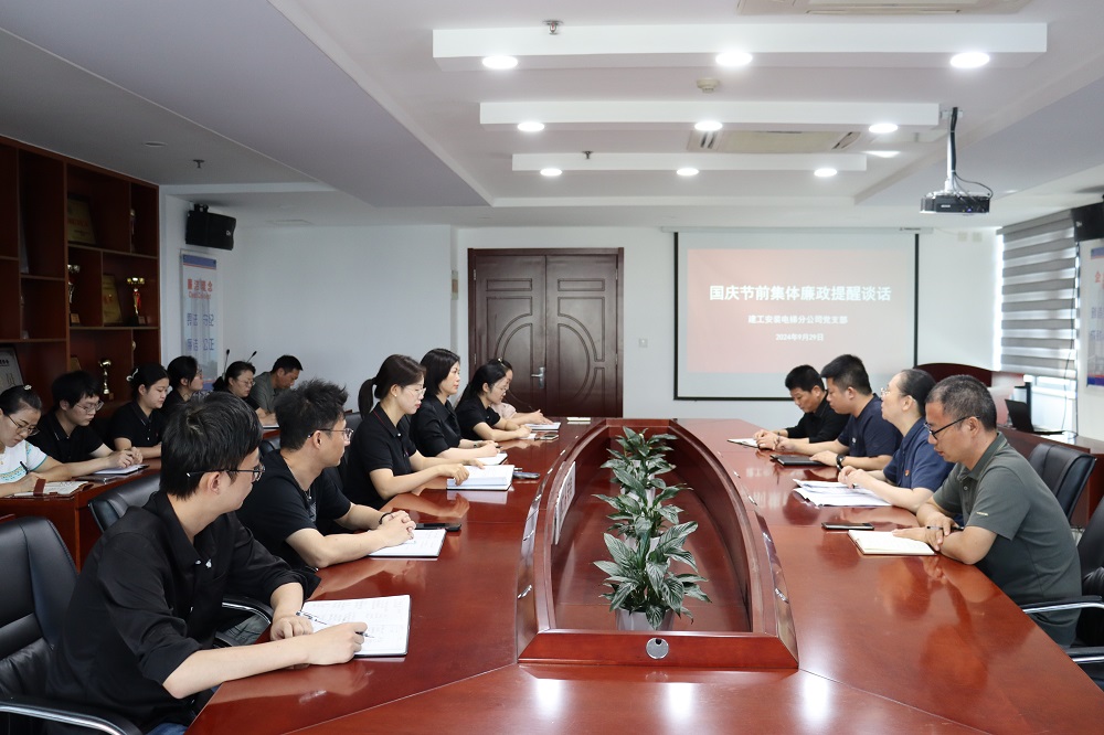 “國(guó)慶”臨近,為進(jìn)一步嚴(yán)明紀(jì)律要求,積極營(yíng)造風(fēng)清氣正的節(jié)日氛圍, 建工安裝電梯分公司黨支部于9月29日上午開(kāi)展節(jié)前集體廉政提醒談話。