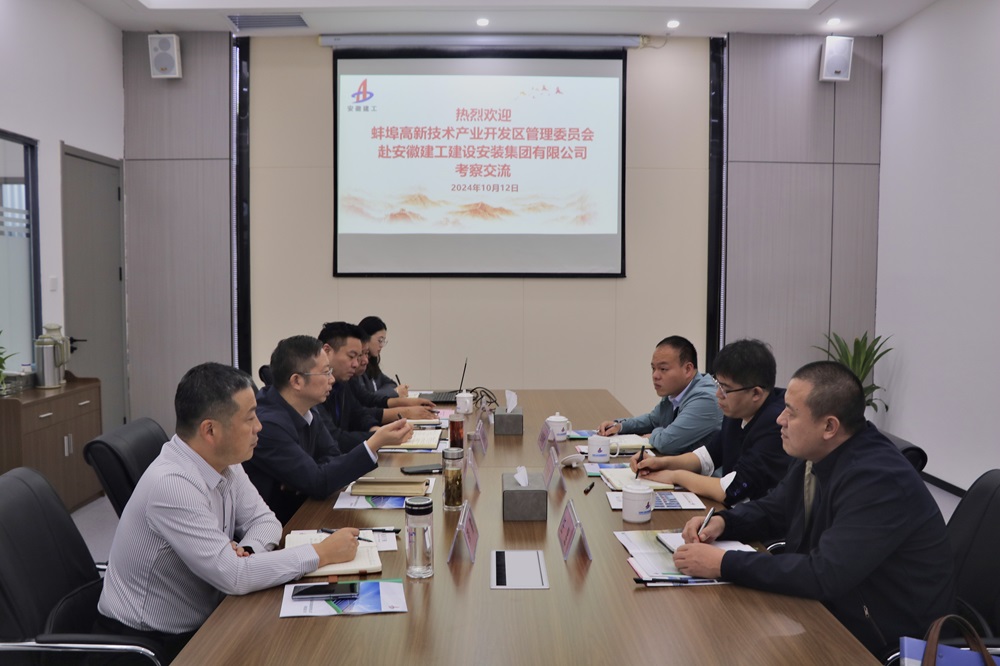 會上,朱珍宏重點介紹了安徽建工集團三大戰(zhàn)略布局基本情況以及建工安裝集團發(fā)展歷程、業(yè)務范圍、核心競爭優(yōu)勢等;方浩亮分享了蚌埠高新區(qū)和自貿區(qū)在電子信息、高端制造和新材料新能源等領域所取得的成就與獨特技術優(yōu)勢。雙方重點圍繞產業(yè)投資、園區(qū)建設、技術創(chuàng)新、光伏儲能方面充分交換意見,為下一步合作打下堅實的基礎。