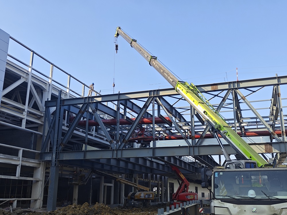 雖已立冬,天氣轉(zhuǎn)涼,但合肥新橋智能制造產(chǎn)業(yè)園一階段一標(biāo)項(xiàng)目部戰(zhàn)鼓依然在響,施工現(xiàn)場(chǎng)依舊是一片奮戰(zhàn)猶酣的火熱場(chǎng)面。吊車揮舞著“長(zhǎng)臂”、升降車起起落落、施工車來回穿梭、工人們忙忙碌碌,敲擊聲聲聲入耳……一切都在為確保競(jìng)賽節(jié)點(diǎn)努力拼搏著。