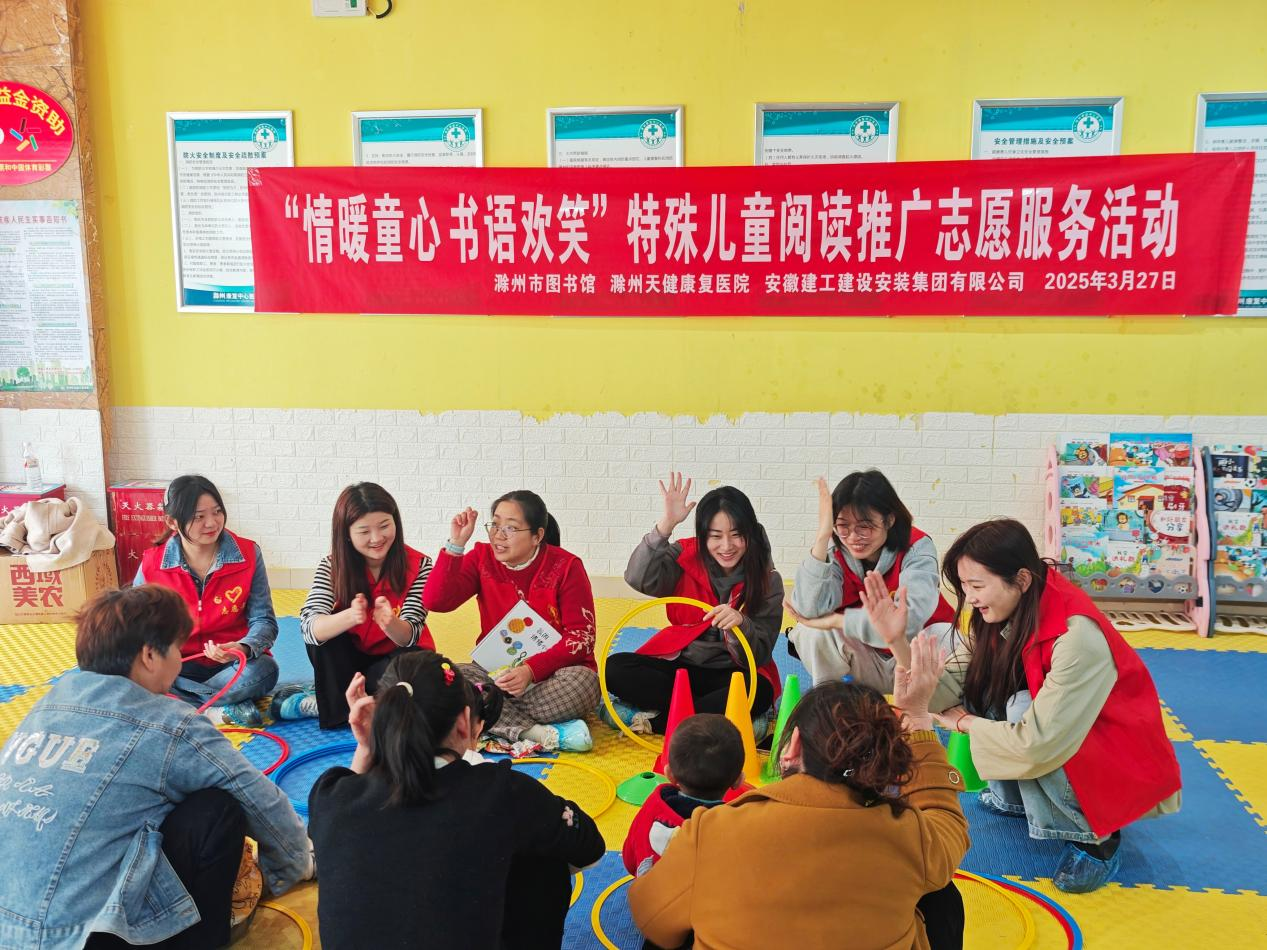 為傳遞社會(huì)關(guān)懷,助力特殊兒童健康成長(zhǎng),3月27日,建工安裝團(tuán)委聯(lián)合滁州市圖書(shū)館組織團(tuán)員青年志愿者走進(jìn)滁州康復(fù)醫(yī)院,開(kāi)展“情暖童心 書(shū)語(yǔ)歡笑”特殊兒童閱讀推廣志愿服務(wù)活動(dòng)。志愿者為孩子們送去牛奶、餅干、繪本圖書(shū)等愛(ài)心物資,用溫暖陪伴為特殊兒童編織美好記憶,用愛(ài)心點(diǎn)亮特殊兒童成長(zhǎng)路。