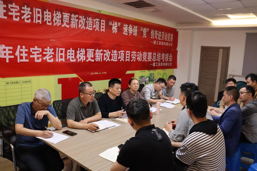 5月14日,建工安裝電梯分公司召開了蚌埠2024年住宅老舊電梯更新改造項目“梯”速爭鋒 “競”創(chuàng)奇跡勞動競賽總結(jié)考核會議。分公司勞動競賽考核領(lǐng)導小組成員、項目部員工以及參建班組負責人參會,會議由電梯分公司黨支部副書記姚春靜主持。