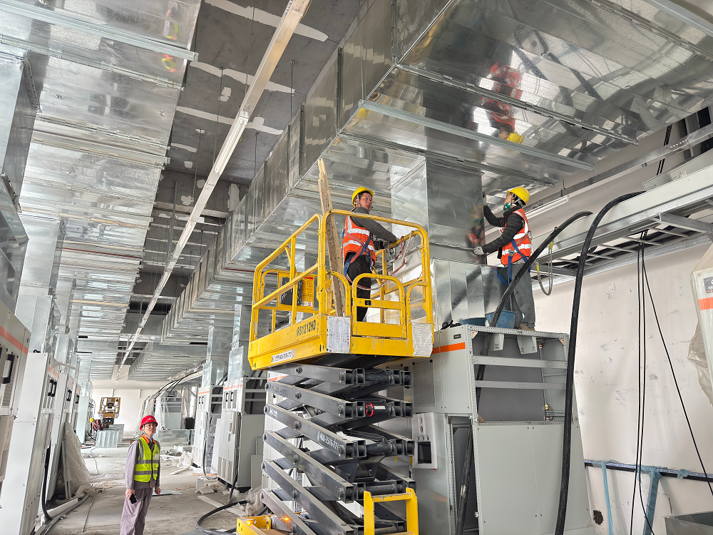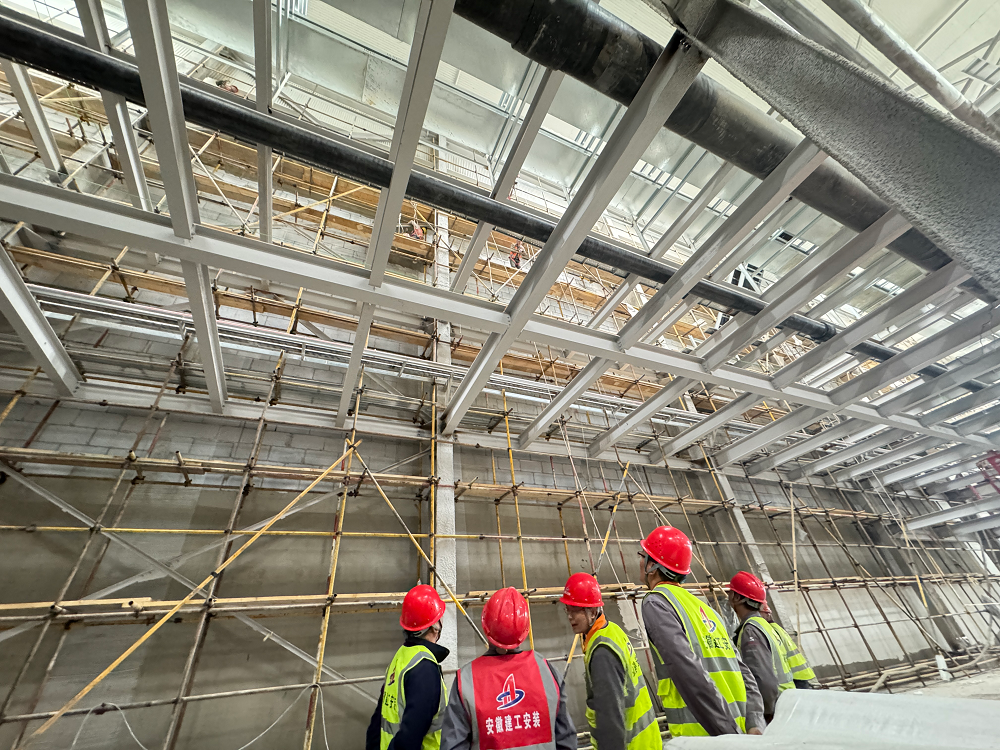 青海高原,氣候惡劣,環(huán)境艱苦,高寒缺氧,但這些困難并沒有阻擋項(xiàng)目部全體成員奮斗的步伐。施工現(xiàn)場(chǎng),機(jī)器轟鳴聲此起彼伏,工人們頭戴安全帽,身系安全繩,操作著各種設(shè)備,熟練地進(jìn)行著防水卷材敷設(shè)、吊頂板安裝、鋼筋綁扎、外墻抹灰、風(fēng)管安裝等作業(yè),每個(gè)環(huán)節(jié)都緊張有序,環(huán)環(huán)相扣。項(xiàng)目管理人員穿梭在各個(gè)施工點(diǎn),緊盯現(xiàn)場(chǎng)安全與質(zhì)量,及時(shí)協(xié)調(diào)解決施工中遇到的問題,他們?nèi)硇牡赝度氲焦ぷ髦?,用專業(yè)的素養(yǎng)和嚴(yán)謹(jǐn)?shù)膽B(tài)度為項(xiàng)目建設(shè)保駕護(hù)航。