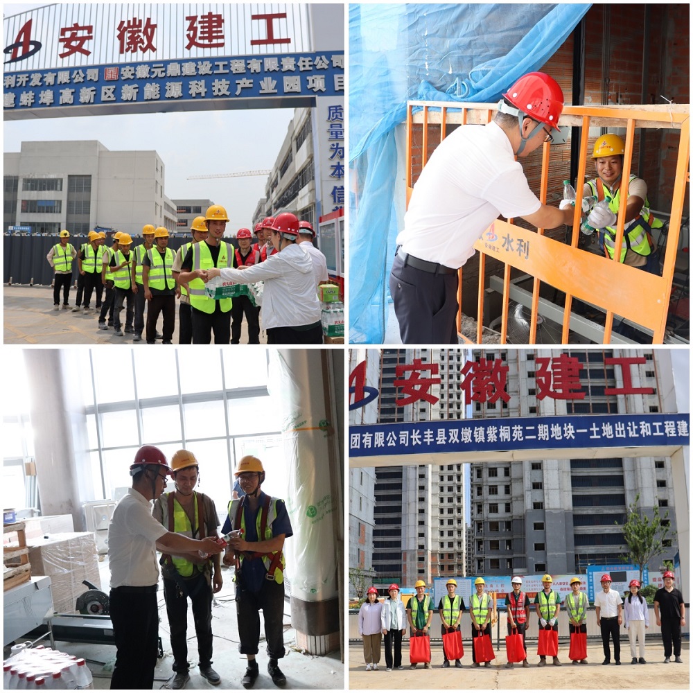 此次活動由電梯公司領(lǐng)導(dǎo)班子成員帶隊,先后深入蚌埠高新區(qū)新能源科技產(chǎn)業(yè)園EPC項目、長豐縣雙墩鎮(zhèn)紫桐苑項目、匯金商務(wù)中心S1#樓室內(nèi)裝修設(shè)計施工項目、潭沖河家園E地塊EPC總承包項目等多個電梯安裝施工現(xiàn)場進(jìn)行走訪慰問,感謝大家在高溫下堅守崗位,并將礦泉水、綠茶、人丹、藿香正氣水、風(fēng)油精、毛巾等防暑降溫用品一一送到職工手中。每到一個項目,慰問組都詳細(xì)了解項目進(jìn)展以及員工生產(chǎn)生活情況,認(rèn)真傾聽一線員工的心聲,著重強調(diào)安全生產(chǎn)工作,叮囑項目部高溫天氣要做好防暑降溫措施,合理安排高溫工作時間,做好高溫下作業(yè)人員防護(hù),時刻把安全生產(chǎn)牢記于心,全力保障員工的健康和安全。