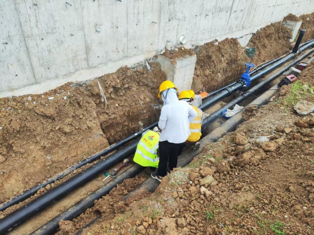 項目部主動作為,堅持“工程量優(yōu)先、工作面優(yōu)先”的原則,將合理優(yōu)化施工工序、科學(xué)安排作業(yè)面、加強(qiáng)資源調(diào)配、最大限度提升工效等作為搶抓工期的關(guān)鍵突破口。針對當(dāng)前高溫天氣和現(xiàn)場交叉作業(yè)等不利因素,項目部還及時優(yōu)化作業(yè)時段,實(shí)行“抓兩頭、歇中間”的錯峰施工方式。同時,加強(qiáng)勞動保護(hù)和安全巡查,現(xiàn)場配備充足的防暑藥品和飲品,強(qiáng)化項目人員的安全交底與健康監(jiān)護(hù),切實(shí)保障員工的安全與健康。